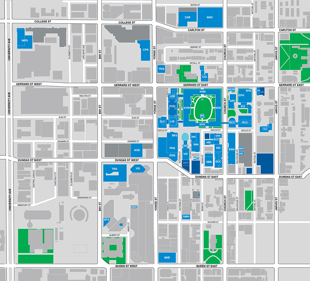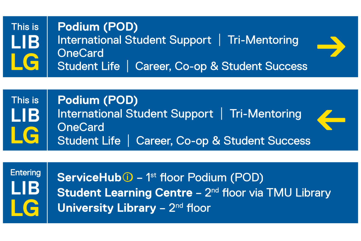 The TMU campus presents wayfinding challenges for students faculty, staff and visitors. Several distinct buildings share a common footprint and corridors, and there are pedestrian tunnels and bridges that link multiple buildings. Navigating interior spaces often means not knowing where one building ends and the next begins.